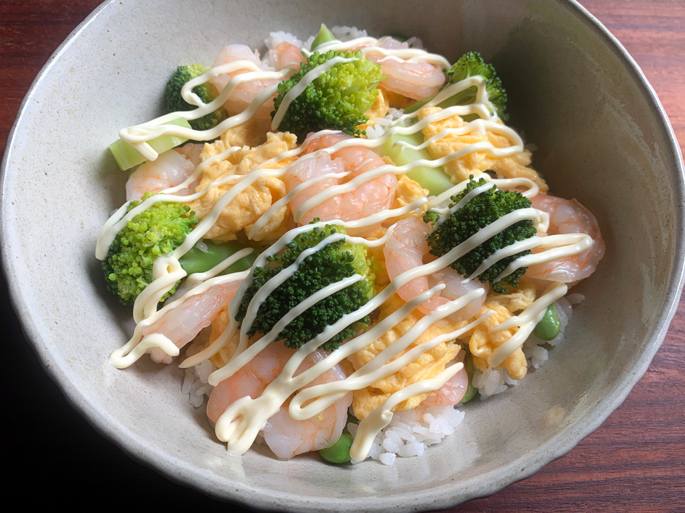 - Mix everything together OR decorate the Rice with the ingredients, drizzle with some Japanese Mayonnaise, and enjoy.