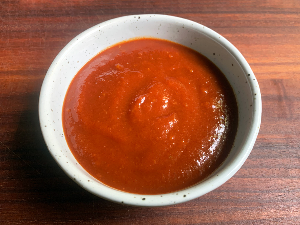 Today I discovered a bottle of Tomato Passata, that was half empty, sitting in the alcohol cabinet. Why was it there? Someone used it while I was away from home. The Passata looked still OK. I decided to make Tomato Sauce. First I was planning to make it Italian OR Mexican flavour, but I changed my mind and made it Korean flavour. The result was fantastic. The Sauce was great with Chicken, Tofu, Chips, Vegetables, OR anything. If you need to use up leftover Passata, try this recipe.