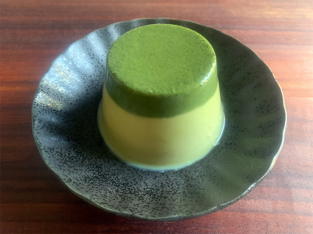 Matcha flavoured Milk Jelly can be tricky to make, because Matcha Powder tends to settle at the bottom. You need to cool the jelly mixture first, then stir well before placing it in the fridge. If you don’t do anything and let the Matcha Powder settle as it does, the result looks like this. When you turn out the jelly onto a plate, the bitter Match Jelly comes to the top. Looking good!